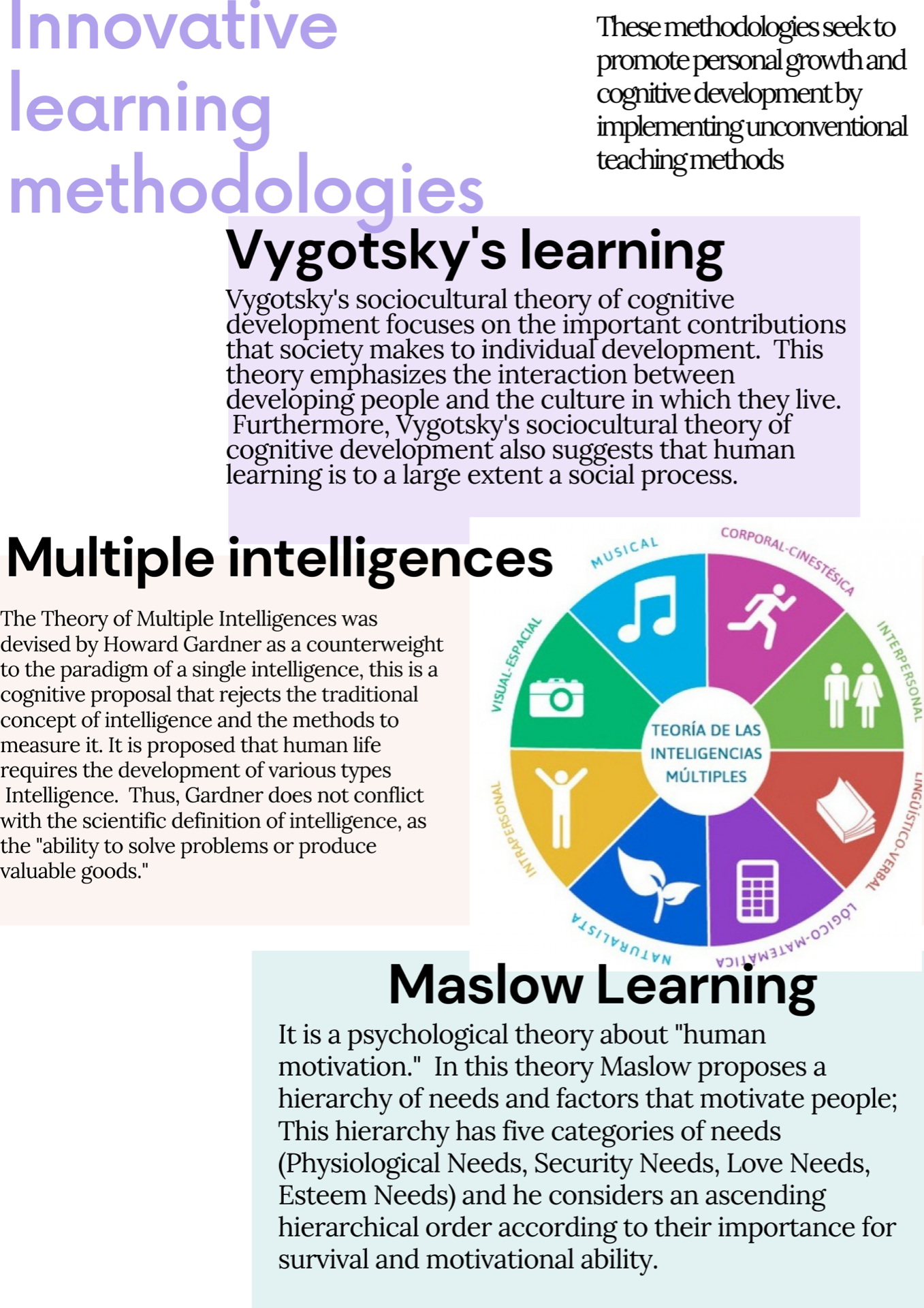 These are some of the theories of different teaching methods, explaining under what perspective and with what purpose they were created in the beginning. In fact, as researchers in this field of education, we would like to emphasize the great importance and impact that implementing this type of teaching would have, in order to begin to generate small changes, which we know would help many students to develop in a better way.